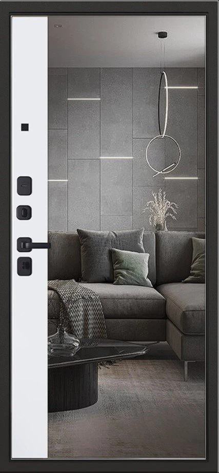 Надежная входная Дверь Scandi с зеркалом премиум класса по цене 46 400 руб. Большая толщина стали защитит от проникновения в ваш дом, квартиру или коттедж. Используется очень качественная фурнитура: замки, цилиндры, ручки, защелки. Покрытие и отделка двери изготовлено под внимательным контролем производителя. Дверь имеет долгий срок службы и гарантию.