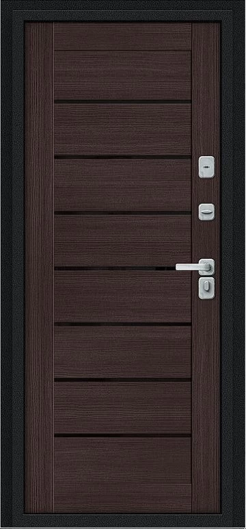 Дверь Браво Thermo Техно Д2/BChrome Букле черное/Wenge Melinga - недорогая эконом класса по цене 5 600 руб., отлично подходит для временной установки в квартиру под сдачу, строительство, ремонт. Не смотря стоимость, модель хорошего качества.